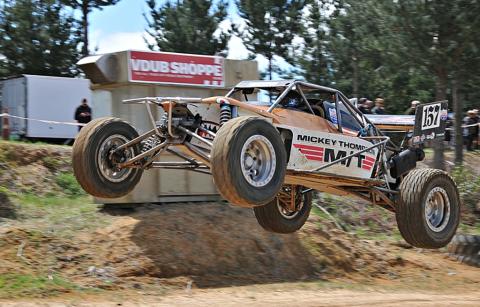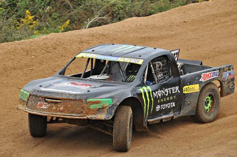 In the unlimited truck class, the big Pro4 V8 trucks of Richard Crabb and Gary Baker were wheel to wheel on the first day, but neither was in line for championship points. Driving his Toyota Chev Prolite, Nick Hall was in line to win the title, and never let the two big trucks out of his sight. He took a strong in-class points balance into the second day of racing.
